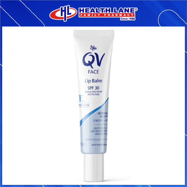 QV Face Lip Balm combines the benefits of a moisturiser to soothe and hydrate dry or cracked lips and SPF 30 broad spectrum sunscreen to help protect against sun exposure